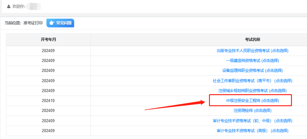 第三步、确认开考年月,并选择“中级注册安全工程师”,然后阅读温馨提示,选择报名省份信息。