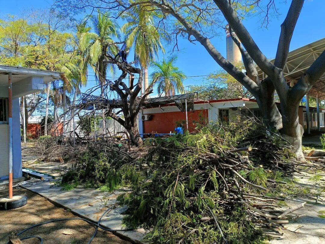 在校园环境优化方面,项目团队发现部分校园树木生长过于繁茂,枝干延伸至教室周边,不仅影响教学空间的正常使用,更存在坠落伤人的安全隐患。为此,项目团队在严格遵守当地法律法规、取得相关许可的前提下,对隐患树木进行科学修剪与清理,既保留了校园的绿意生机,又彻底消除了安全风险,让学生们能在更加安全、舒适的环境中安心学习、快乐成长。