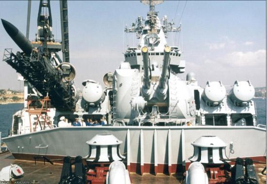 那时中国海军正在从俄罗斯引进各种海军装备,对于这款11000吨级的战舰自然有兴趣,美国听说之后,马上采取行动阻止,乌克兰向中国提供这艘战舰的计划被美国所阻挠,最终了流产。这艘战舰性能先进,美国曾表示要抢购该舰:宁可买下当旧船拆毁,也不能许可其落入中国之手。当中国转向俄订购了现代级驱逐舰之后,美国随即收回求购要求,最终谁也没要,让该舰一直闲置于造船厂中。